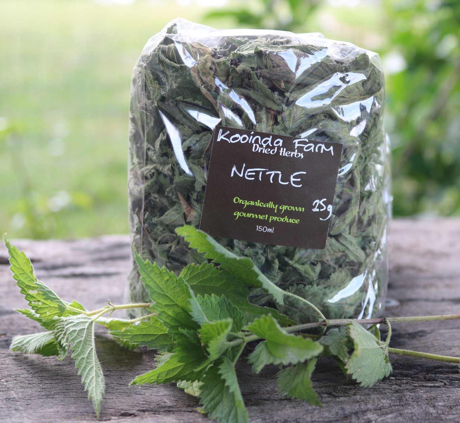 Nettle leaf – Dehydrated whole leaves, freshly picked from Kooinda Cottage herb gardens. Grown using organic principles and hand picked with love. They are kept whole so you can chop them as required – this preserves the natural oils, aroma, and nutrients for longer.