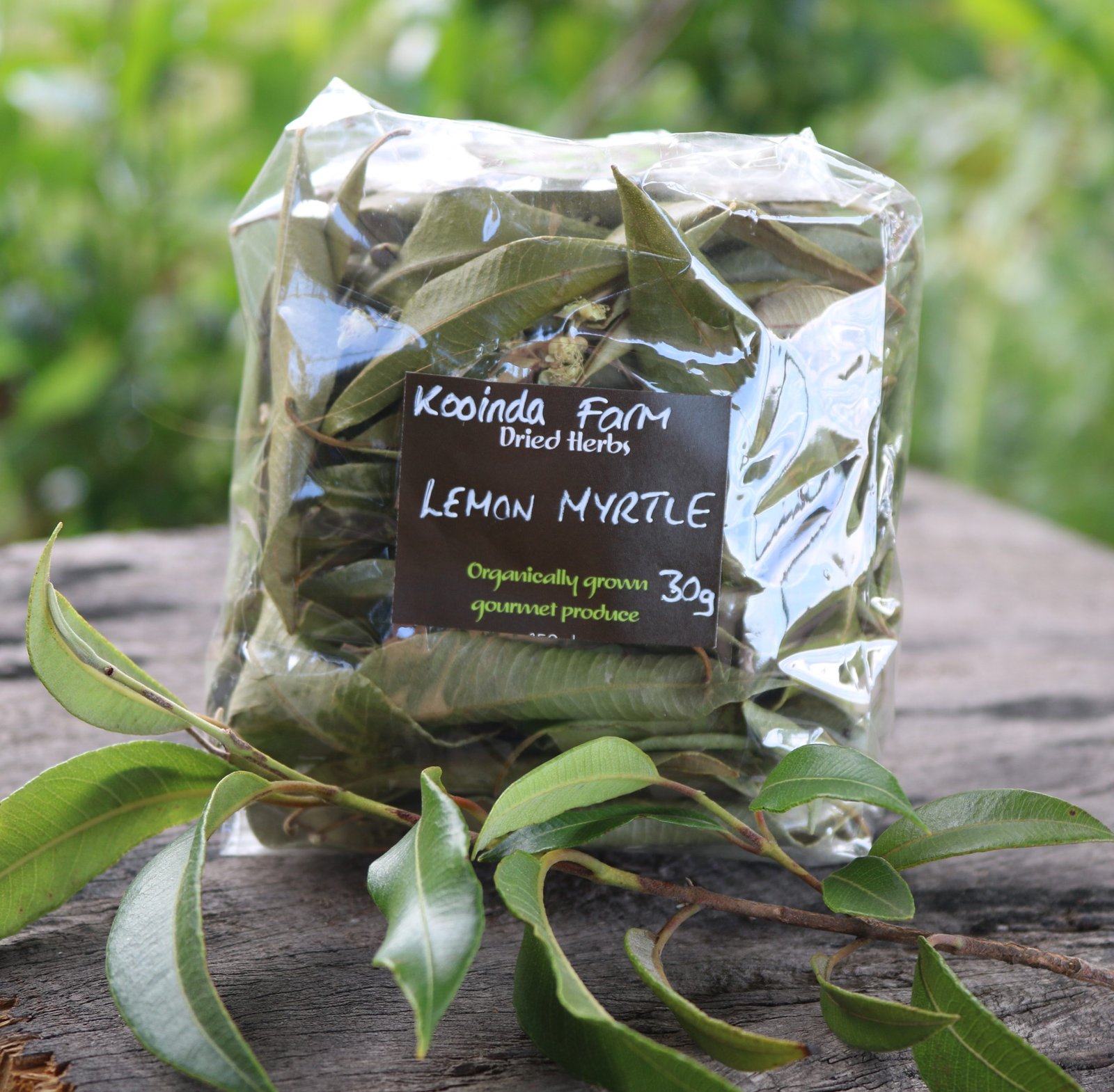 Dehydrated whole Lemon Myrtle leaves, freshly picked from Kooinda Cottage herb garden. Grown using organic principles and hand picked with love. They are kept whole so you can chop them as required – this preserves the natural oils, aroma, and nutrients for longer.
