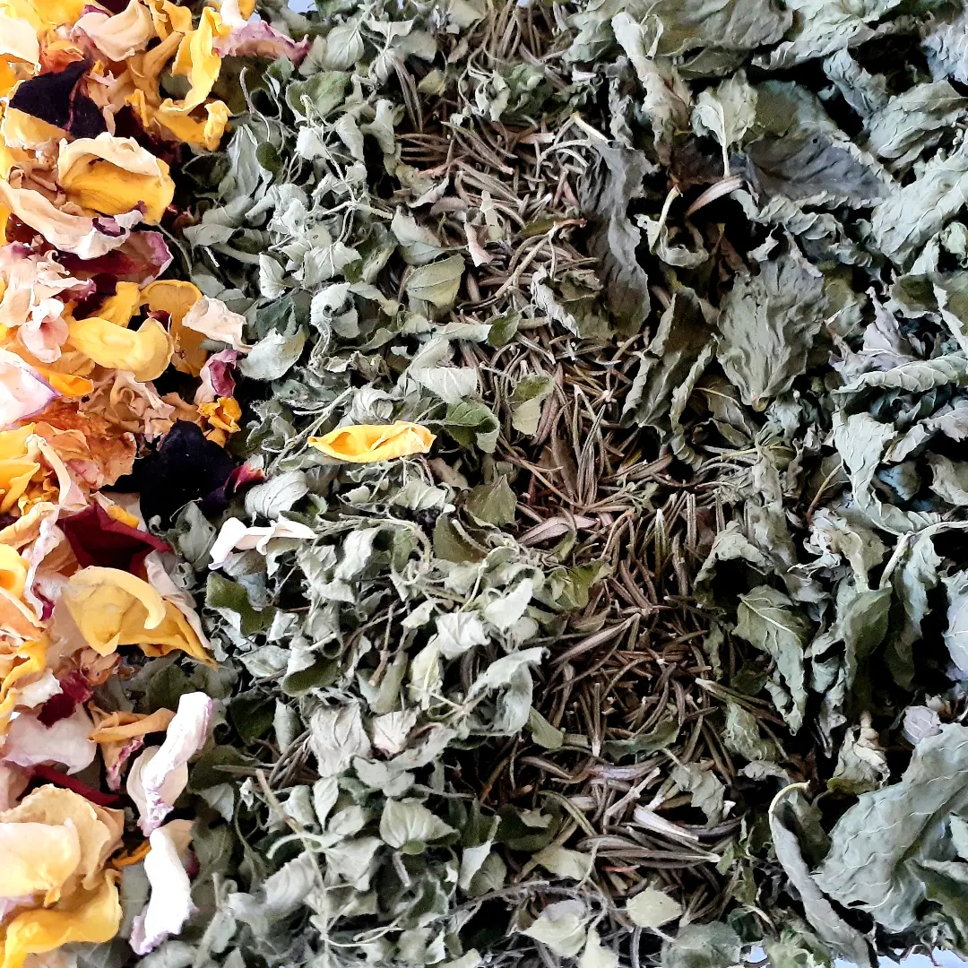 Wholesome Blend is a wonderful whole-body wellness herbal tea infusion of Mint, Rosemary, Sage, Oregano, and Rose Petals with an all round balance of healing benefits! It has a deep earthy wholesome flavour with a real winter comfort taste blend.